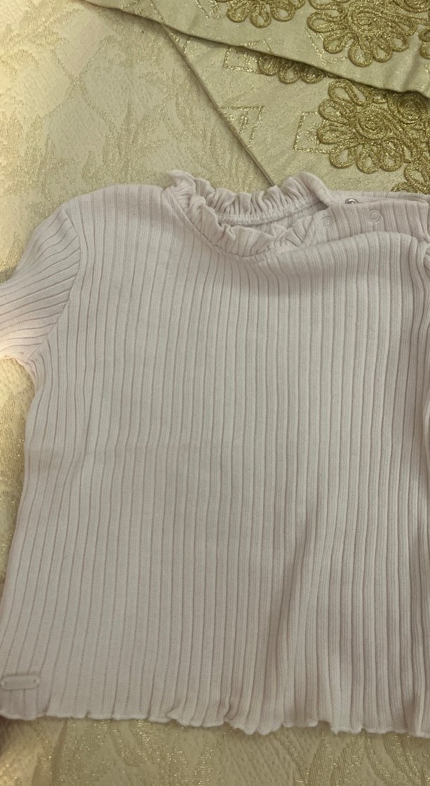 Bej renkli, fitilli dokulu ve balıkçı yaka kız çocuk kazağı. Uzun kollu, keten dokusuyla sade ve temel tarzı yansıtır. Uçuk penbe triko takım çok iyi durumda