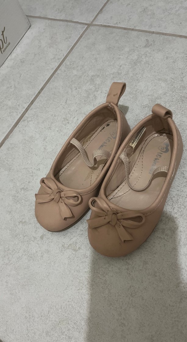 Kız çocukları için bej renkli, yumuşak kauçuk malzemeden yapılmış, sade fiyonklu babetler. Düz ve pastel renkte, temel normcore tarzda, desensiz.