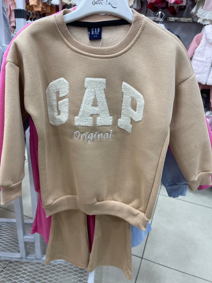 Bej renkli kız çocuk sweatshirt, bol kesim, uzun kollu ve yuvarlak yakalıdır. Yumuşak kumaştan üretilmiş, önünde örme GAP yazısı bulunur. 3-6 yaş mecvuttur