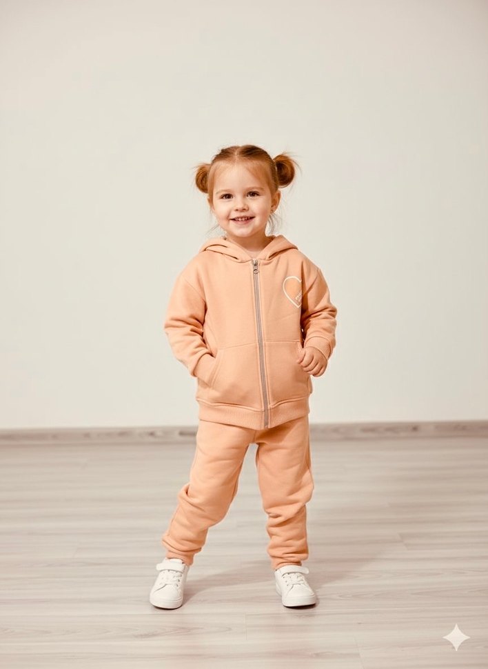 Kız çocuklar için bej kapüşonlu ve bol kesim eşofman takımı. Yumuşak kumaş, rahat ve şık bir görünüm sunar. Desensiz ve pastel renk tonlarında, uzun kolludur.