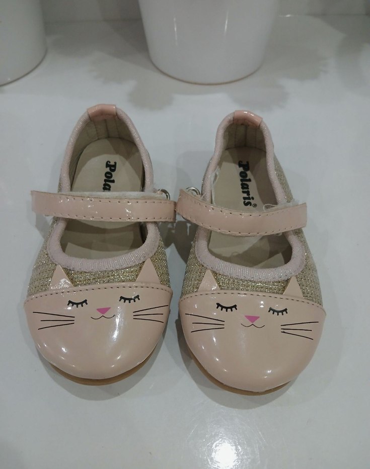 Kız çocuklarının bayılacağı, simli ve pembe renkli, önünde sevimli kedi yüzü deseni bulunan babet ayakkabıdır. Polaris markadır ve kalitesi oldukça iyidir. Özel günlerde veya günlük kullanımda rahatlıkla tercih edilebilir. Ürün ikinci el olmasına rağmen çok temiz ve iyi durumdadır. #polaris #kızçocuk #babet #ayakkabı #kedi #balerin