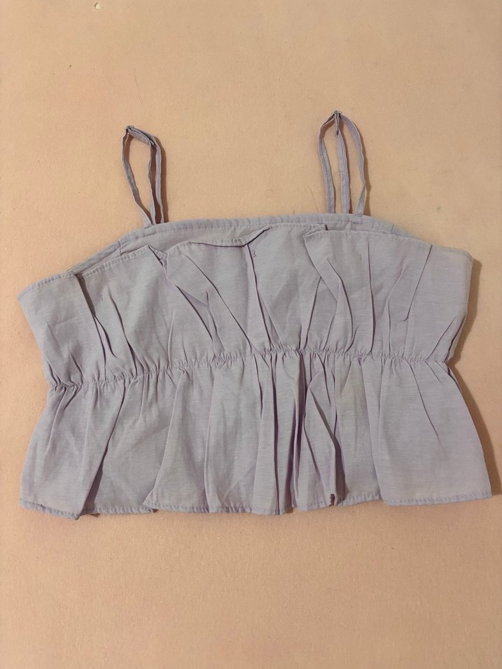 Kız çocuk bej keten bluz, askılı ve pileli detaylara sahip. Rahat kesimi ve sade tasarımıyla bohem tarz sunar.