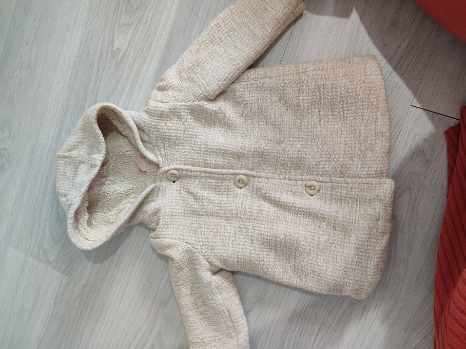 Bej keten kumaştan yapılmış kız çocuk ceket, düğmeli ve kesimli yaka detayına sahiptir. Düz ve rahat kesimlidir. 1 sezon kullanıldı