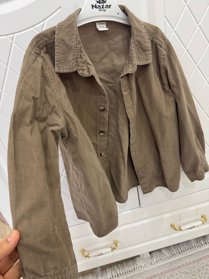 Bej keten kumaştan, düğmeli, notched lapel yakalı ve uzun kollu kız çocuk bluzu. Bol kesim ve bohem tarzda sade, basic bir modeldir.