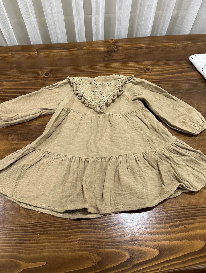 Kız Çocuk Bej Keten Fırfırlı Elbise