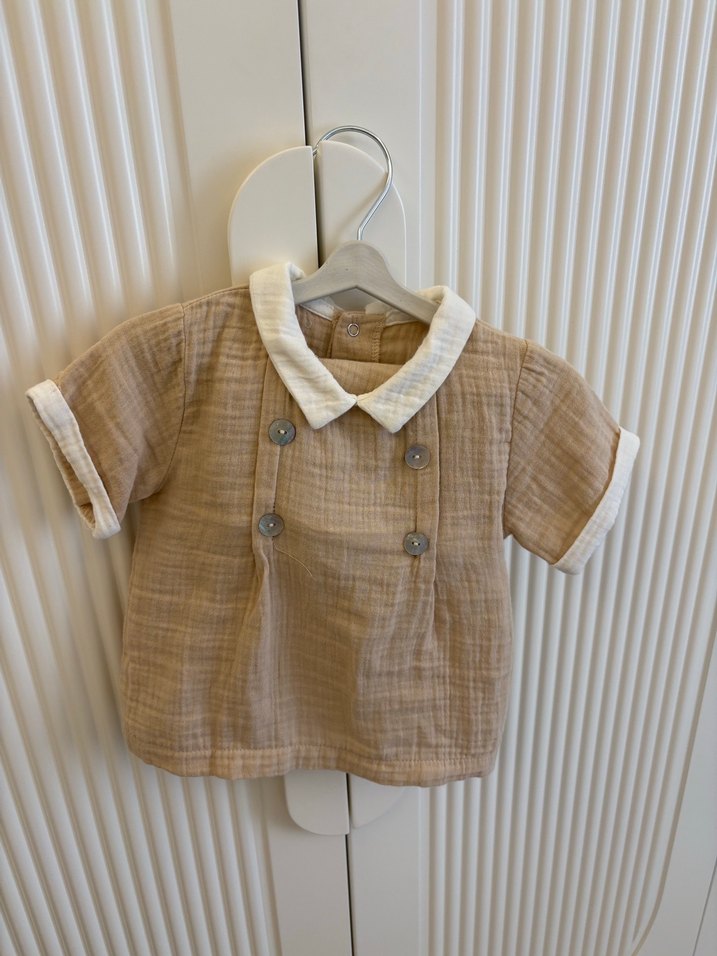 Kız Çocuk Bej Keten Kısa Kollu Gömlek