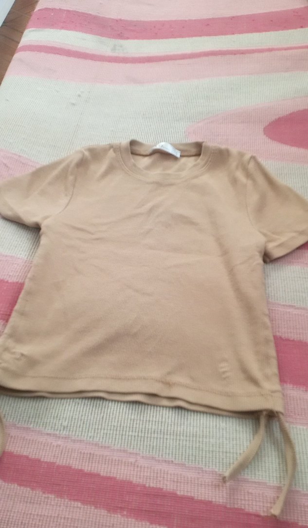 Keten kumaştan, kısa kollu ve bisiklet yaka bej renk kız çocuk tişörtü. Normcore tarzıyla rahat ve şık bir görünüm sunar.