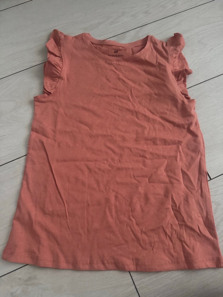Pastel bej renkli, kolsuz kız çocuk tişörtü. Omuzlarda fırfır detaylı, rahat kesim ve yuvarlak yaka, yumuşak keten kumaştan.
