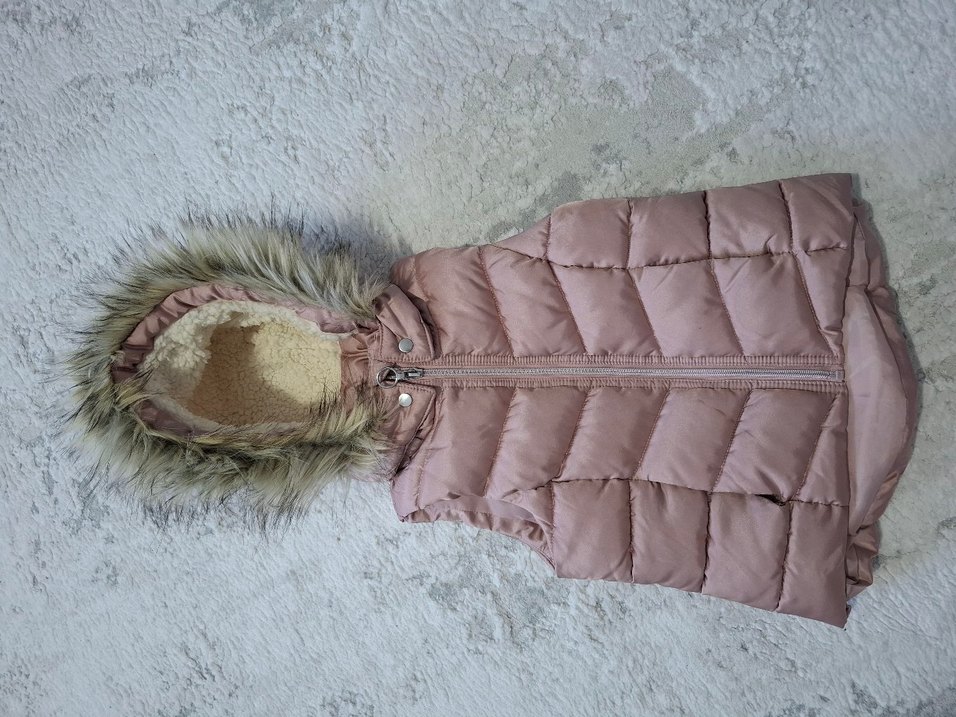 Kürklü detaylı, bej renkli, kolsuz ve yumuşak fleece kumaştan yapılmış kız çocuk yeleği. Fit kesim ve streetwear tarzında.