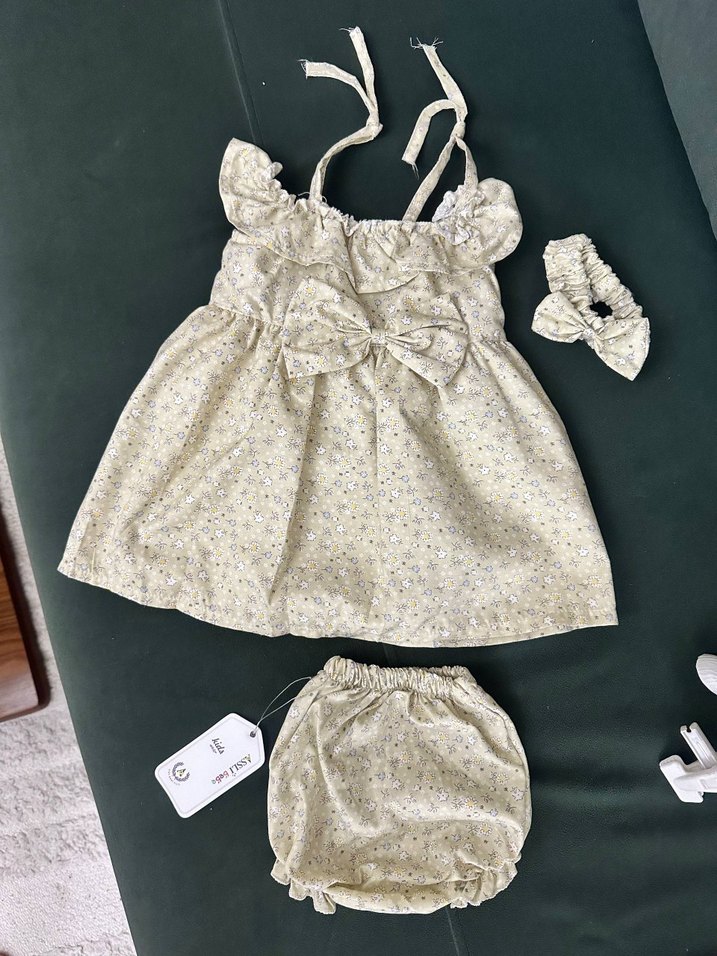 Kız Çocuk bej Pamuklu Fırfırlı Elbise 12ay