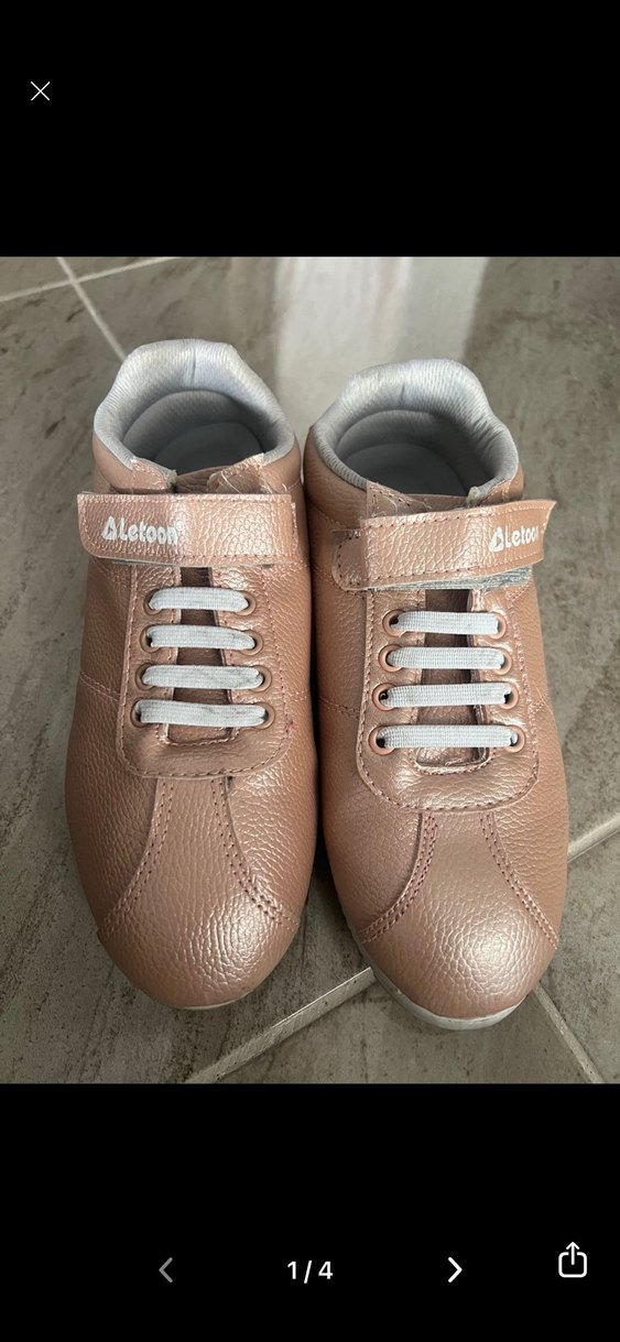 Bej renkli kız çocuk spor ayakkabısı, Velcro bantlı ve kauçuk tabanlıdır. Düz yüzeyli ve günlük sokak stili için uygundur. Marka: Aletoo.