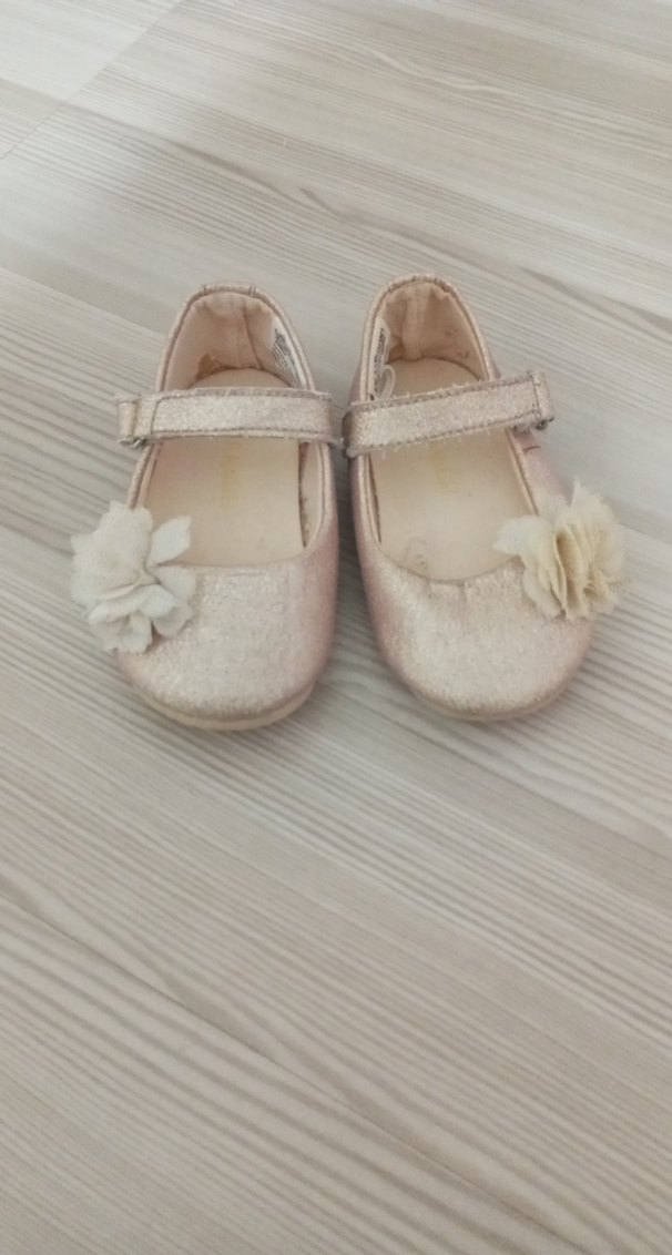 Bej renkte, tokalı kayışlı ve uç kısmında çiçek detaylı kız çocuk babet ayakkabı. Yumuşak kauçuk malzemeden, pastel bohem tarzında.