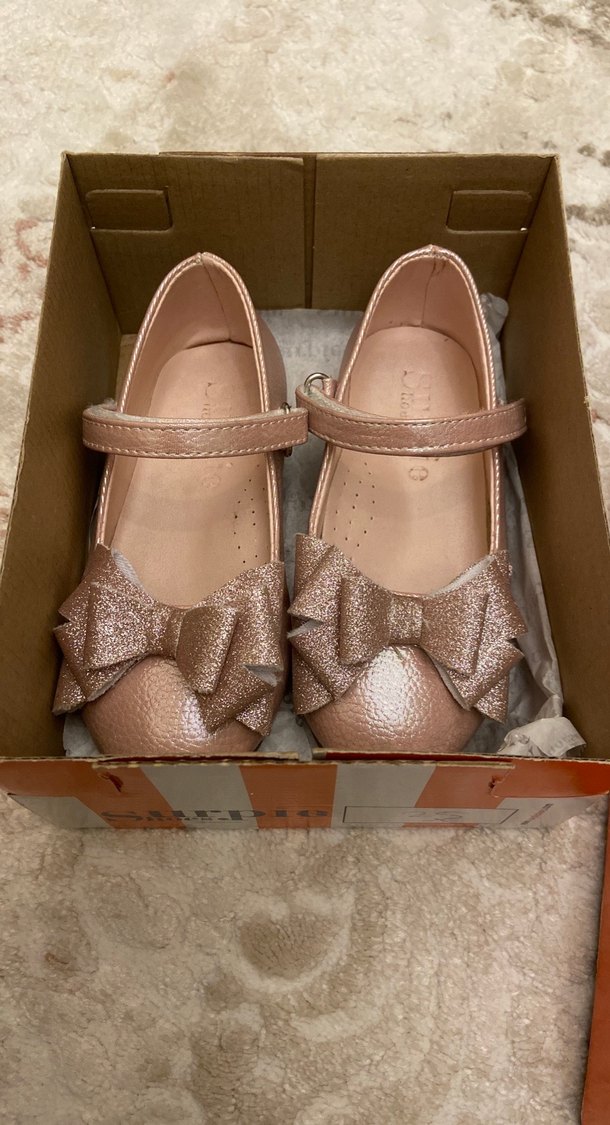 Bej parlak tokalı kayışları ve fiyonk detayları olan kız çocukları için kauçuk malzemeden yapılmış
