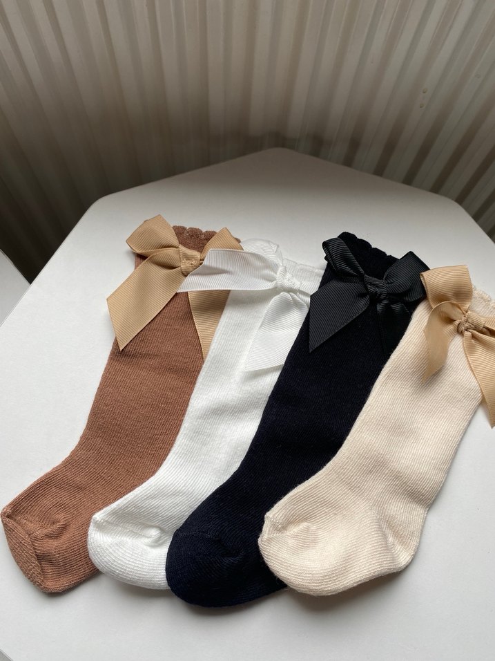 Yumuşak triko kumaştan yapılmış, üst kısmında büyük fiyonk detayı bulunan bej renk kız çocuk çorabı. Rahat ve şık bir görünüme sahiptir.
