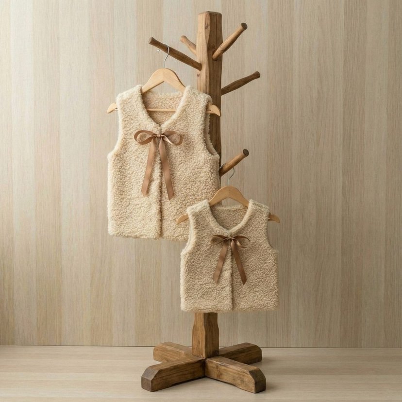 12-18 aylık çocuk için tek fiyat. Yetişkin yelek beden ölçüsüne göre belirlenmektedir. Bej renkli, kolsuz kız çocuk triko yelek. Fitted kesim, yuvAnne–kız uyumu en tatlı haliyle El emeği, sıcacık bir kombinle yeni yıla birlikte girin ✨ Tamamı el işi Özenle, sevgiyle üretildi Sipariş & detaylar için DM #annekızkombini #annekız #annekızmodası #handmade #handmadefashion elisi elemegi butik butiktarz kışkombini yeniyıl yeniyılstili keşfet instabutik instamom momandmearlak yaka ve nakışlı fiyonk detayına sahip, pastel tonlarda yumuşak ve rahat bir görünüm sunar.