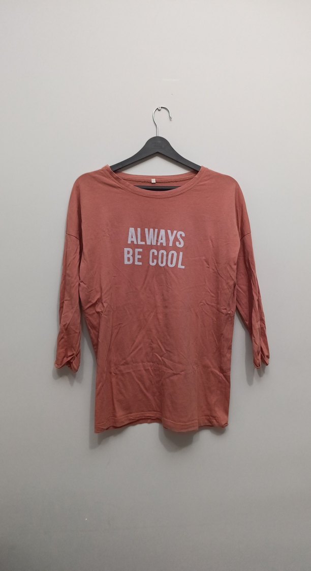 Pamuklu kumaştan, rahat kesim, uzun kollu, yuvarlak yaka kız çocuk tişörtü. Üzerinde 'ALWAYS BE COOL' baskısı bulunur.