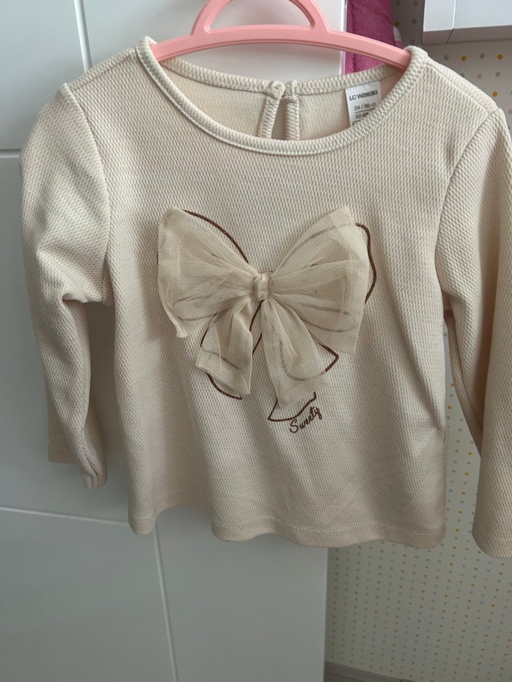 Uzun kollu, bisiklet yaka, bej renkli triko bluz. Önde nakışlı büyük fiyonk detayı bulunur. Pastel tonlarda, sokak stili için uygun.