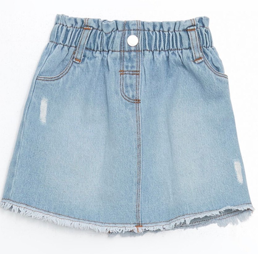 Kız Çocuk Beli Lastikli ve Düğmeli Açık Mavi Denim Etek 7-8 yaş