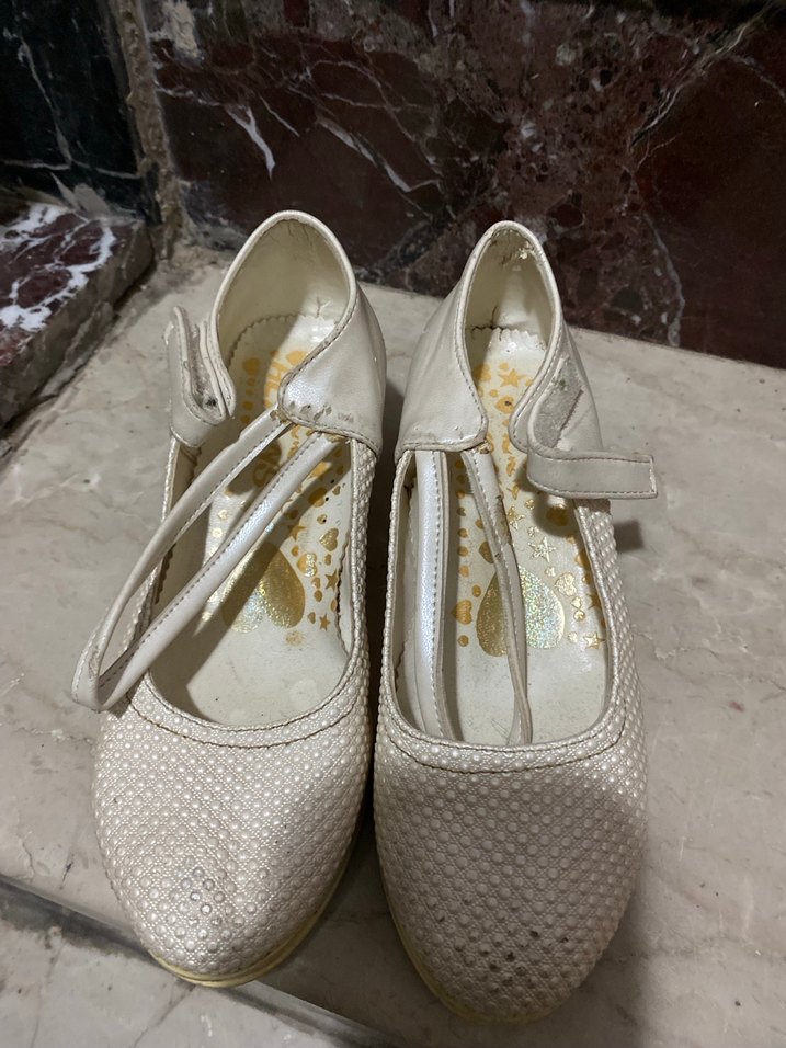 Kız çocuk özel gün için kullanıma uygun Babet tarzı topuklu ayakkabı . Ortlama 2/3 cm boyutunda kalın bir topuğu var özel gün için alınmıştı birkaç defa kullanıldı numara olmadığı için satıyorum rengi tam beyaz değil hafif krem rengi tonlarında 33 numaradır