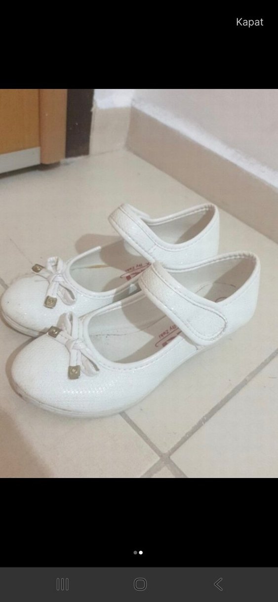 Lastikli bantlı ve küçük fiyonk detaylı beyaz kız çocuk babet ayakkabı, rahat kullanım için kauçuk malzemeden üretilmiştir. 1 kez giyildi