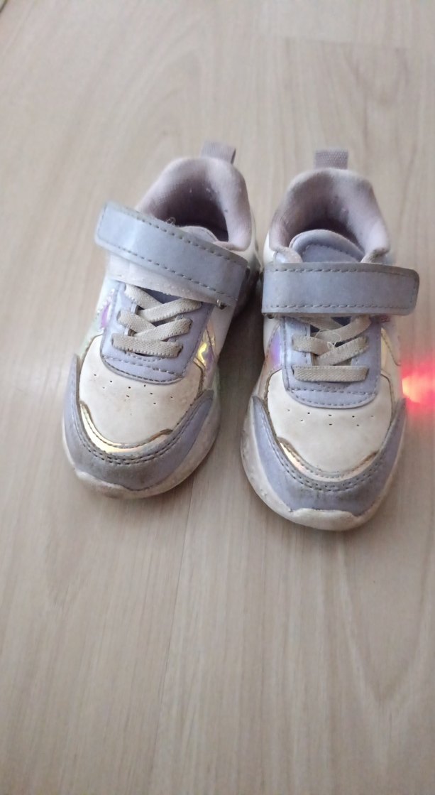Beyaz renkli, bağcıklı ve cırt cırtlı kız çocuk spor ayakkabısı. Tie-dye desenli ve kauçuk tabanlı, trend sokak stili için uygun.