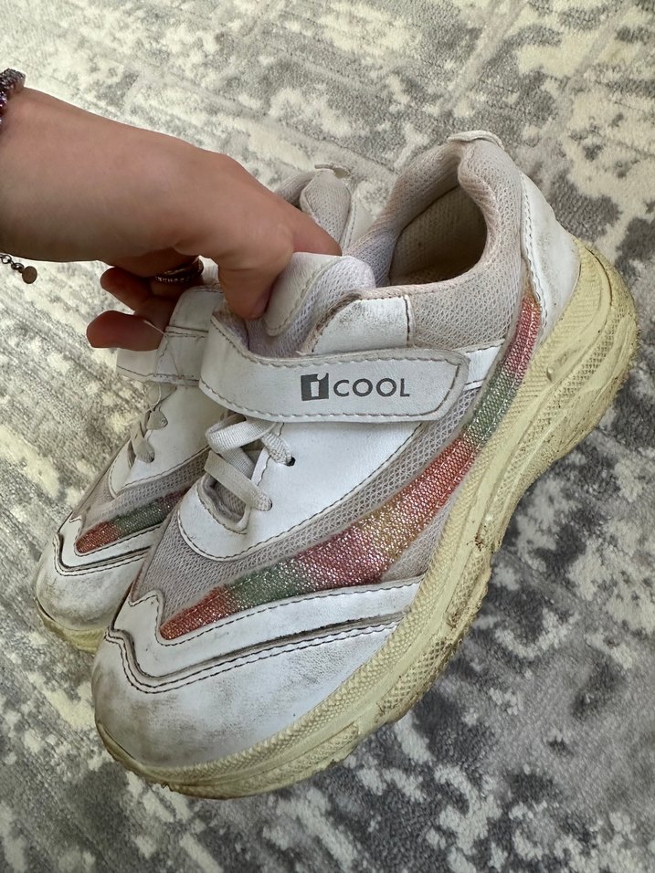 Beyaz, pastel tonlarda tie-dye desenli kız çocuk spor ayakkabısı. Kauçuk tabanlı ve bağcıksız, velcro bantlı rahat tasarım…