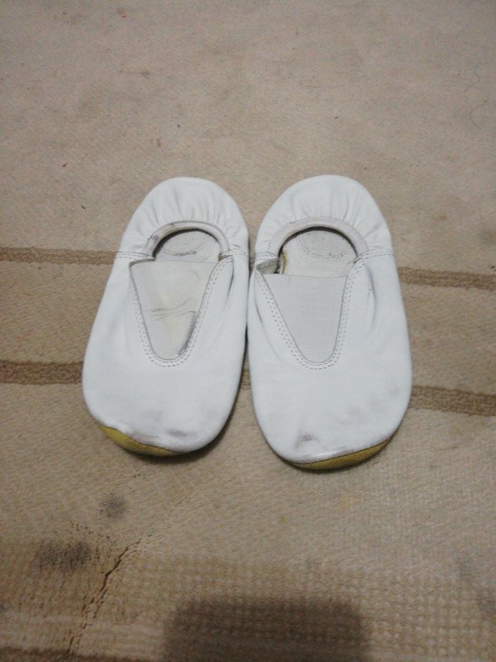 Kız çocukları için beyaz, düz, lastik malzemeden yapılmış bale ayakkabısıdır. Hafif renkte ve desensiz klasik bir tasarıma sahiptir. Gerçek deri sorunsuzdur az kullanılmış bir ürün makınada yıkanabilir 30 no tabanı kalın