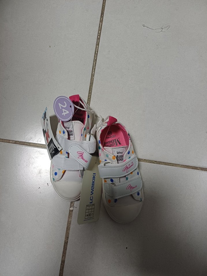 Beyaz baskılı kız çocuk spor ayakkabısı, cırt cırtlı ve lastik tabanlı, sokak stili için uygun.