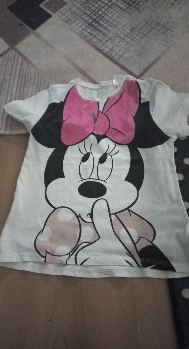 Pamuklu kumaştan, kısa kollu, bisiklet yaka ve büyük pembe fiyonk baskılı, trend sokak tarzı kız çocuk tişörtü.