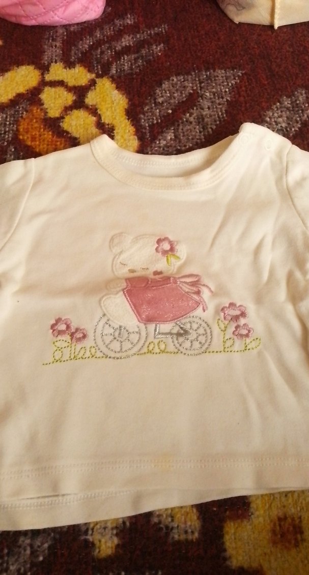 Beyaz pamuklu, bol kesim, kısa kollu kız çocuk tişörtü. Bisiklet süren ayı baskısı ve yuvarlak yaka bulunur. Rahat ve yumuşak kumaş.