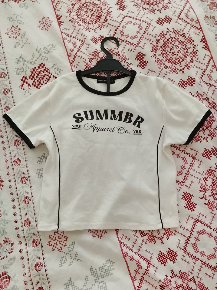 Kız çocukları için beyaz pamuklu, kısa kollu, baskılı tişört. Gri detaylarla trend ve rahat bir stil sunar.