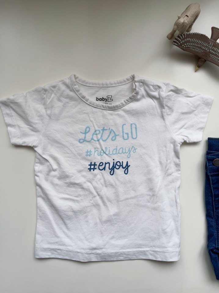 Beyaz renkli, kısa kollu ve yuvarlak yakalı kız çocuk tişörtü. Yumuşak denim kumaştan üretildi, baskılı desenler içerir. Rahat kesimiyle şık bir sokak stili sunar.