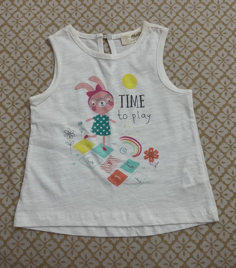 Kolsuz, beyaz renkli kız çocuk tişörtü, baskılı ve bohem tarzda. Belki birkaç kez giyilmiştir onun dışında kullanılmadı