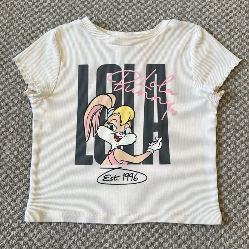 Beyaz pamuklu kız çocuk tişörtü, bol kesim ve kısa kolludur. Yuvarlak yakalı, baskılı, dantel detaylı, 'Est. 1996' yazılı tasarımıyla sokak stili ve rock punk havası verir.