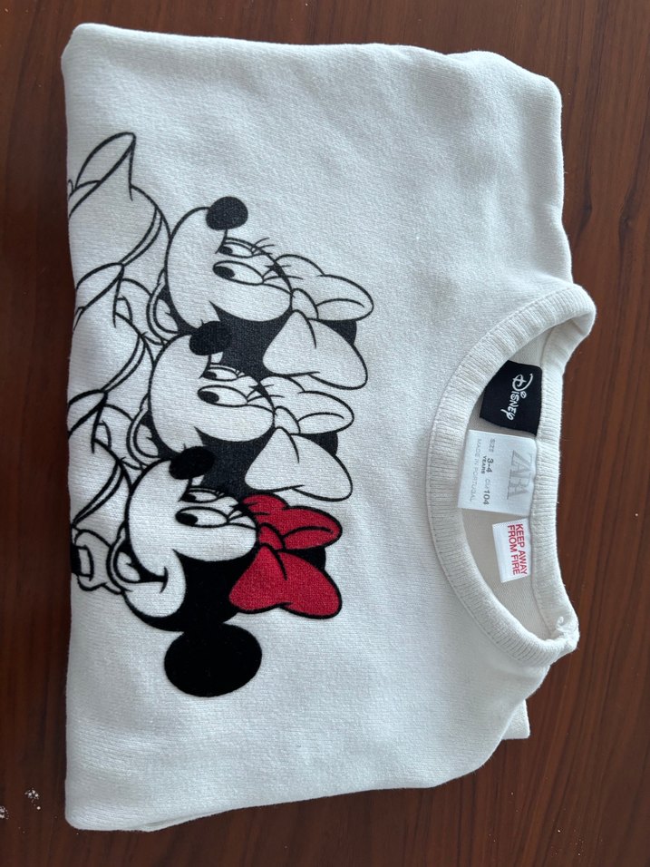 Zara Mickey mouse desenli Kırık Beyaz renkli, uzun kollu ve bisiklet yakalı kız çocuk sweatshirtü, yumuşak ve sıcak kumaştan yapılmıştır.