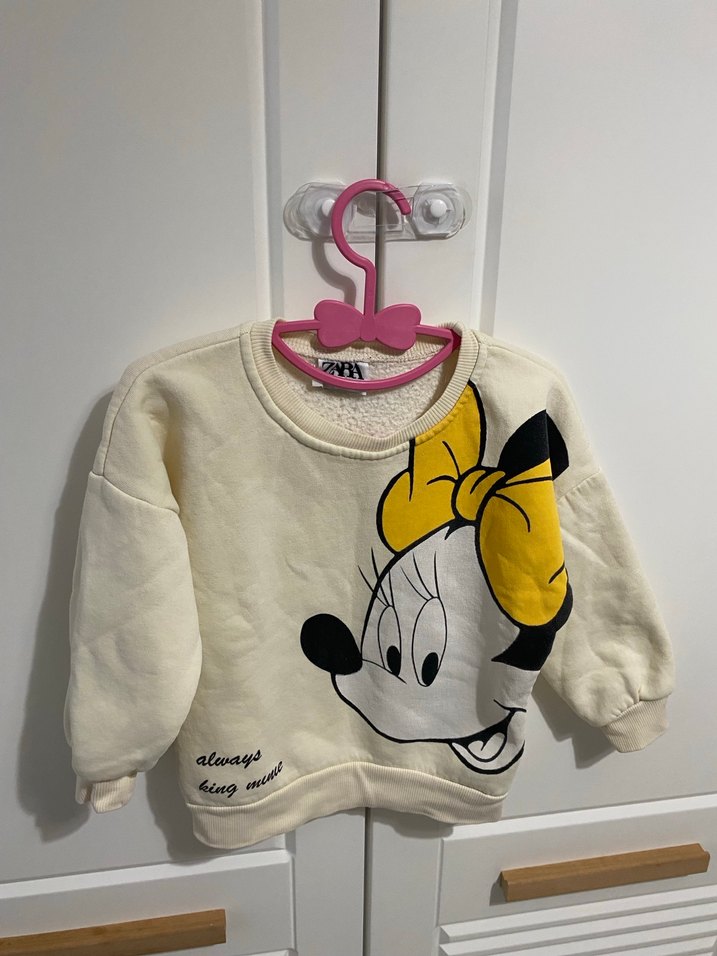 Kız çocuk sweatshirt, yuvarlak yaka ve uzun kolludur. Yumuşak kumaştan, pastel beyaz renkte, Minnie Mouse baskılıdır,rahat kesimlidir. Minie mouse baskılı içi şardonlu sıcacık tutan 2-3 yaş sweatshirt.Parmağımla gösterdiğim yerde minicik belli belirsiz bir lekesi var uyguna yüklüyorum marka temsilidir