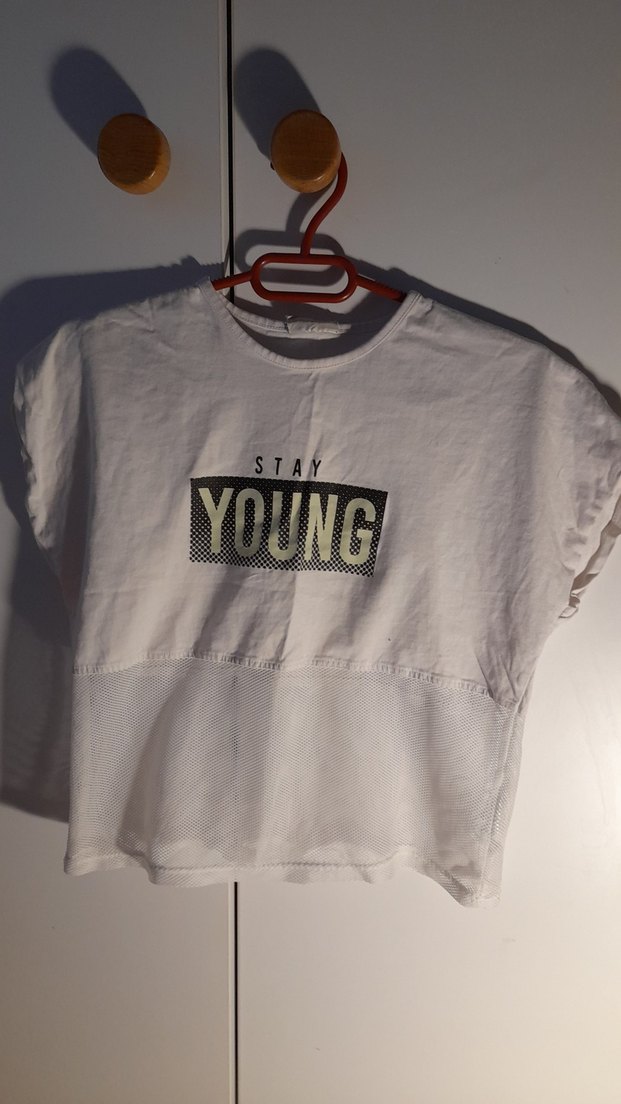 Kız çocuk beyaz tişört, kısa kollu ve yuvarlak yakalıdır. üstü pamuk altı fileli. hicbi kusuru yok. dolabimdaki diger cocuk kiyafetlerine de bakmayi unutmayin.