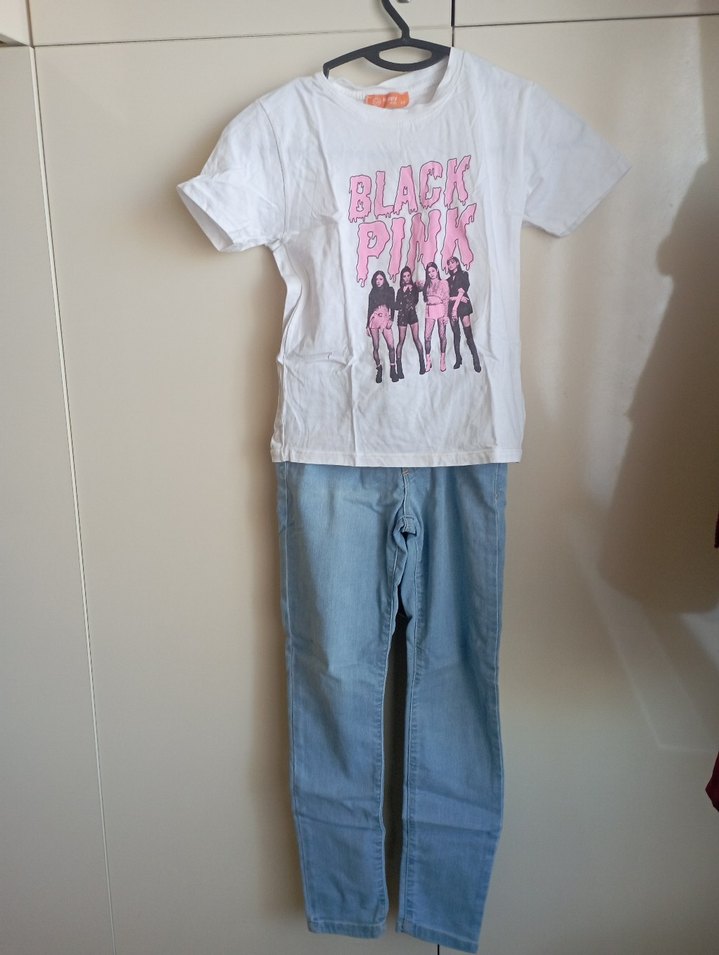 pantolon-tshirtlu kombinler Beyaz t-shirt ve kot pantolon 8-9 yaş siyah pantolon ve siyah t-shirt 10-11 yaş uyumlu
