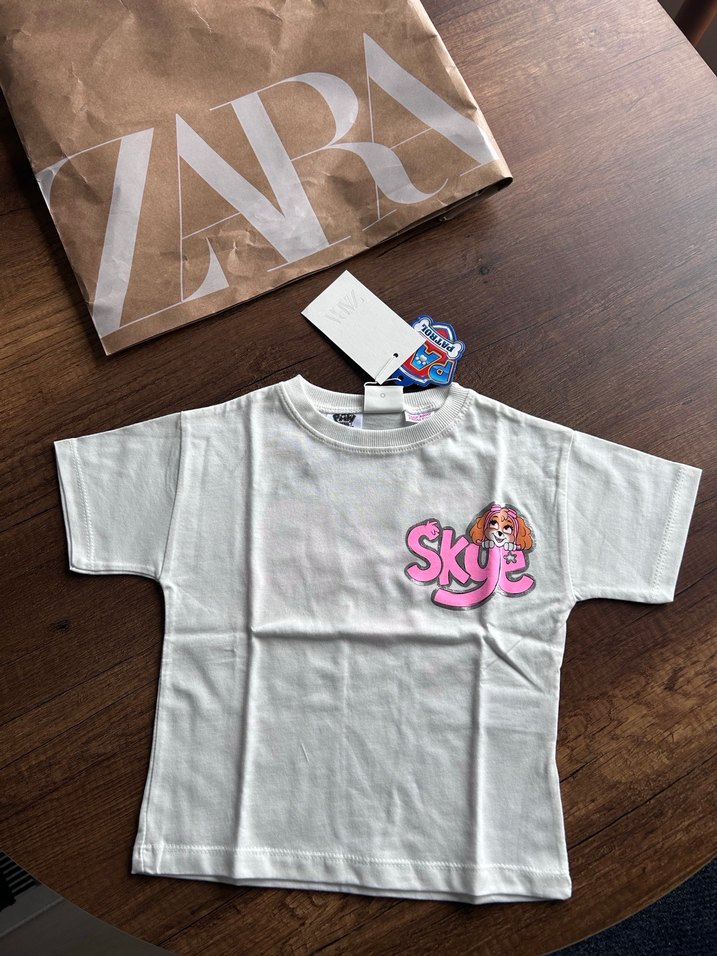 Kız çocukları için beyaz, baskılı, kısa kollu, yuvarlak yakalı ve bol kesim tişört. Sentetik kumaştan, Velcro detaylı, rahat sokak stili.