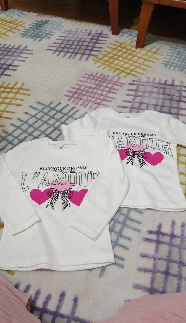 Kız Çocuk Beyaz Baskılı Uzun Kollu Tişört