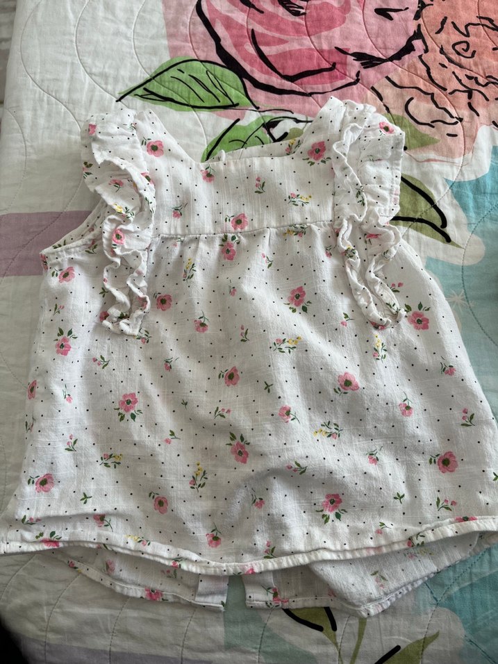 Kız çocukları için pamuklu, straplez yakalı, fırfırlı kollu, pastel beyaz ve çiçek desenli bol kesim elbise. Bohem tarzı yansıtır.