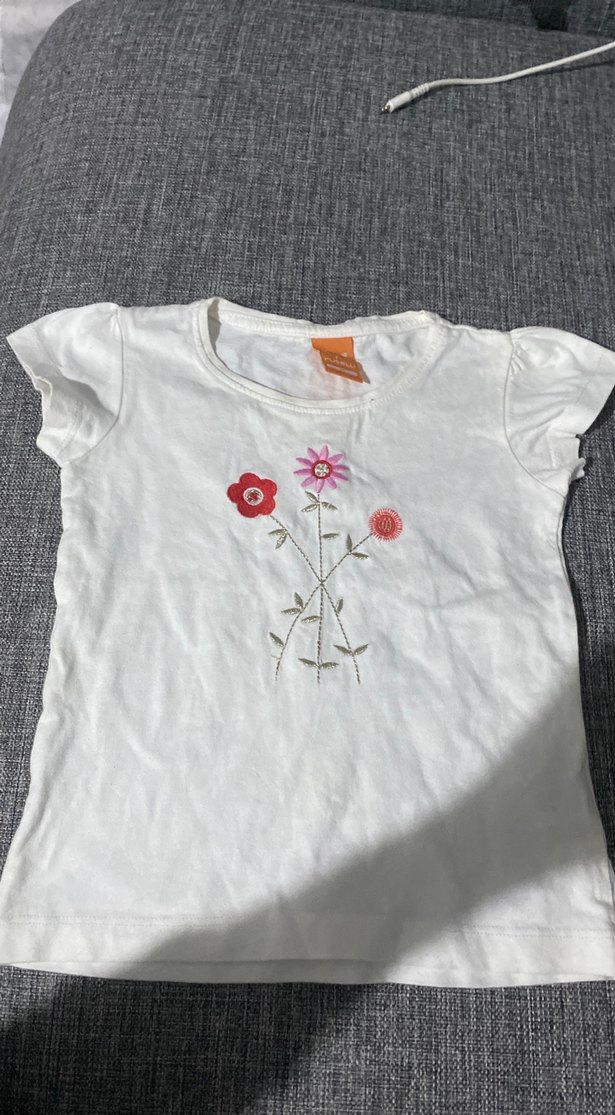 Kız Çocuk Beyaz Çiçekli Pamuklu Tişört