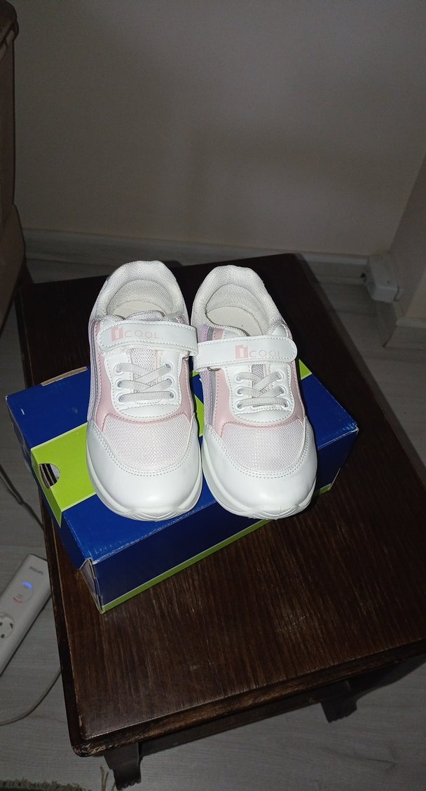 Beyaz renkli, cırt cırtlı ve yumuşak kauçuk tabanlı kız çocuk spor ayakkabısı, trendy sokak tarzı için uygundur. Rahat ve hafif yapıda.