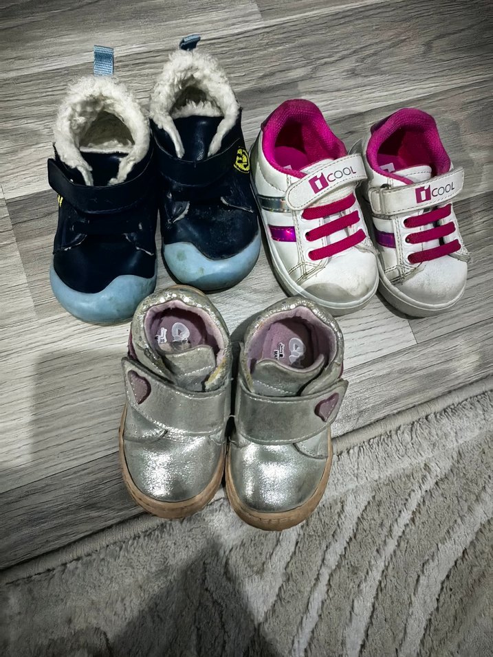Cırt cırtlı beyaz kız çocuk spor ayakkabısı, kauçuk tabanlı ve gri detaylı. Rahat ve trend normcore tarzda.3 adet ayakkabı