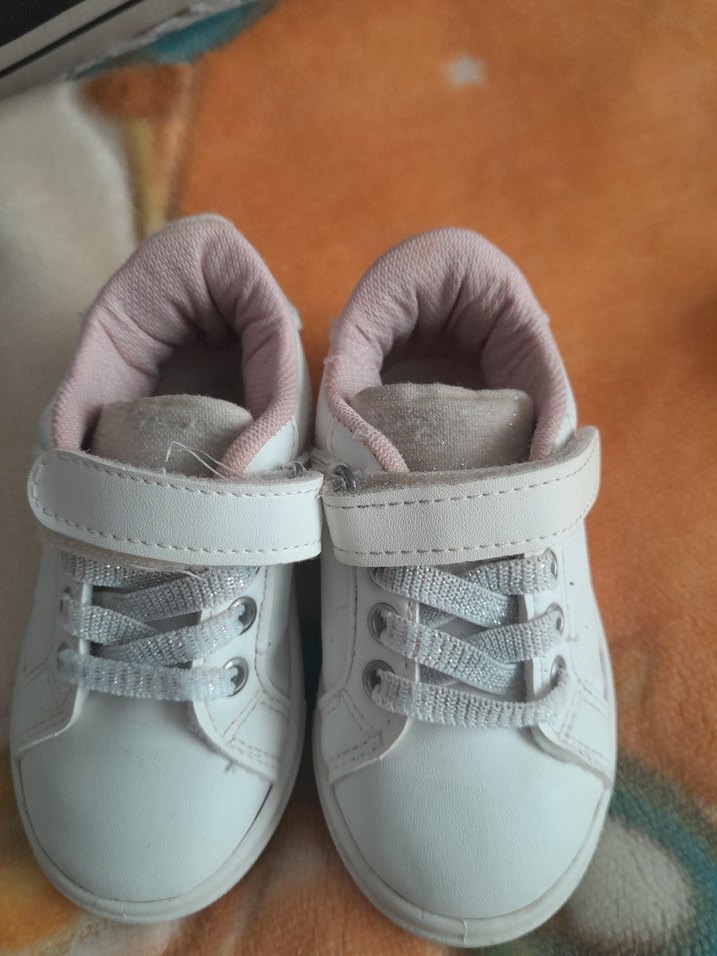 Beyaz renkli, cırt cırtlı ve kauçuk tabanlı kız çocuk spor ayakkabısı, pastel detaylı ve desen içermeyen rahat tasarım. temiz