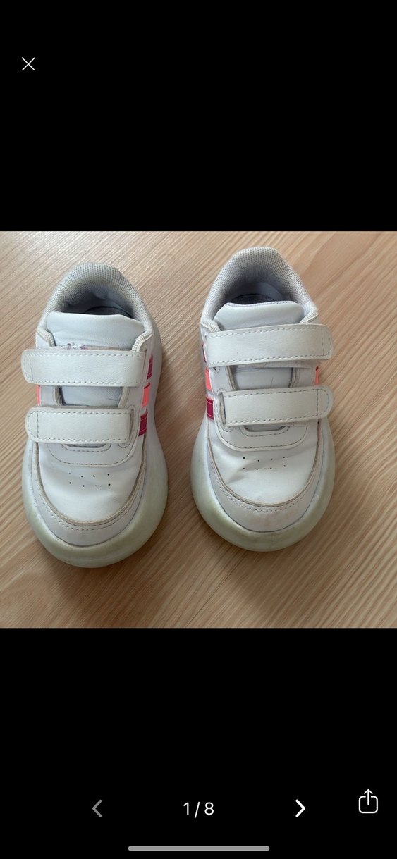 Beyaz renkli, cırt cırtlı kız çocuk spor ayakkabısı, kauçuk tabanlı ve desen içermeyen rahat bir sokak stili sunar. Kızım 1. Dönem sadece kreş içinde kullandı ayağına küçüldüğü için satıyorum. 23.5 numaradır.