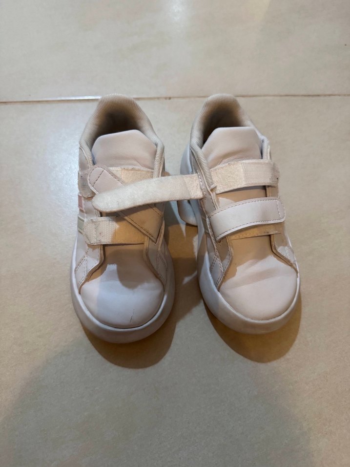 Beyaz renkli, cırt cırtlı bantlara ve kauçuk tabana sahip kız çocuk spor ayakkabısı. Sokak stili için pastel tonlarda, desensiz ve rahat kullanım sağlar.