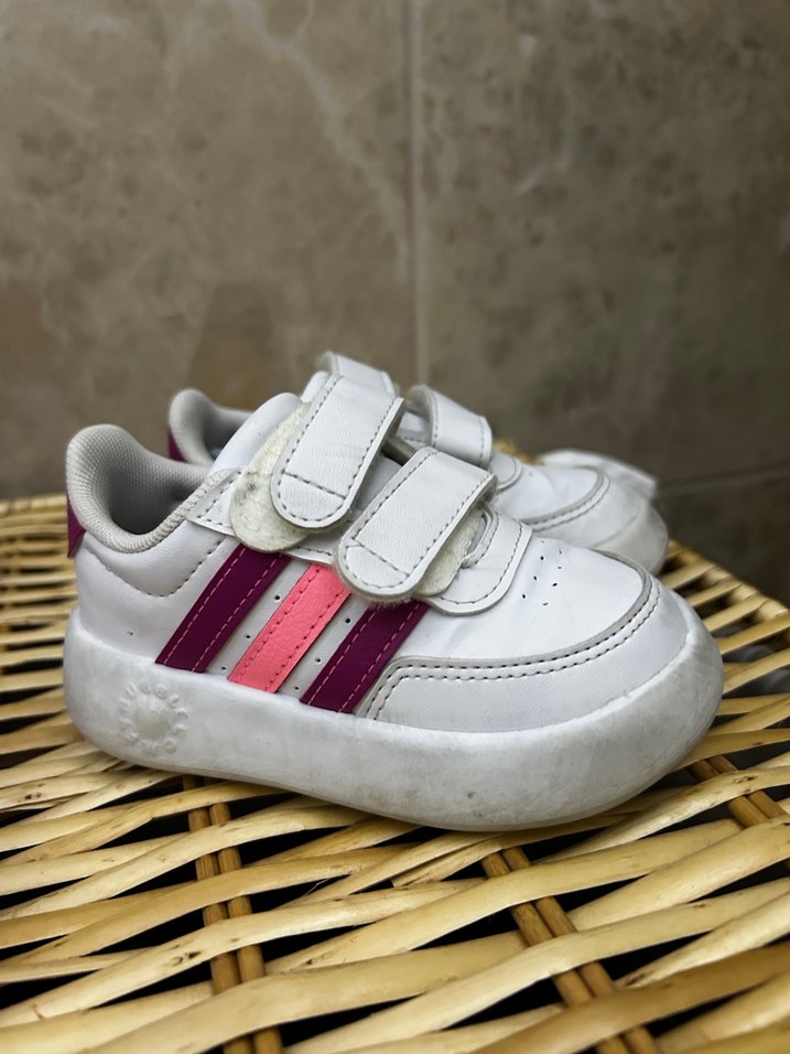Beyaz kız çocuk spor ayakkabısı, renkli çizgili detaylar ve kauçuk tabanlıdır. Kolay kullanım için cırt cırtlı bantlara sahiptir, rahat ve şık bir sokak tarzı sunar.