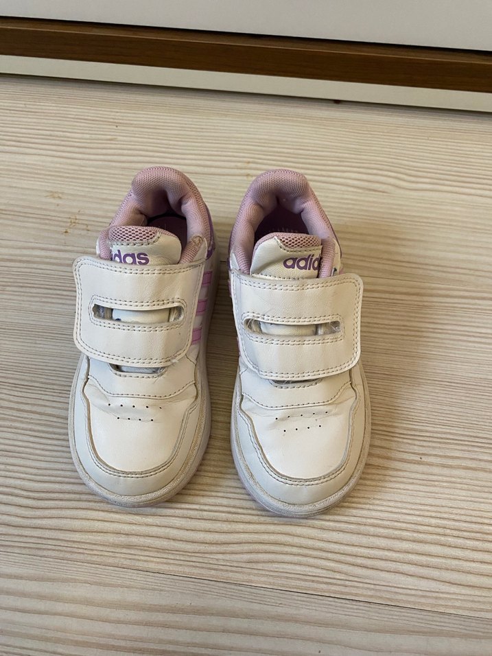 Kız çocukları için pastel beyaz renkte, cırt cırtlı bağlama sistemine sahip spor ayakkabılar. Kauçuk tabanlı, sade ve desen içermeyen sokak stili ayakkabılar.