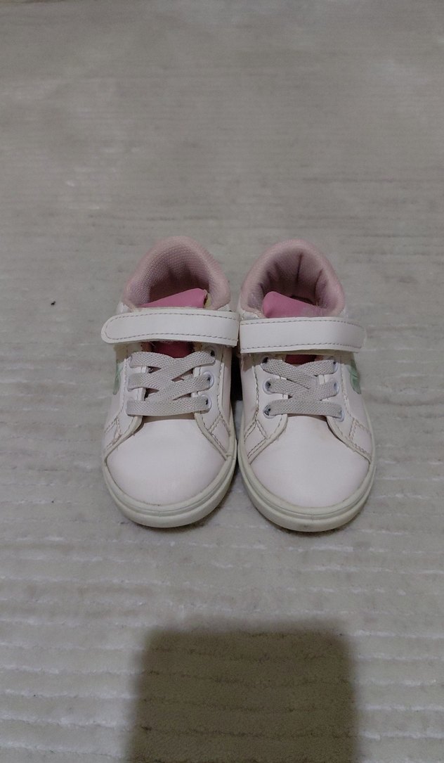 Beyaz renkli, cırtcırtlı kız çocuk spor ayakkabısı. Pastel pembe iç astarı ve kauçuk tabanlarıyla sokak tarzına uygun.